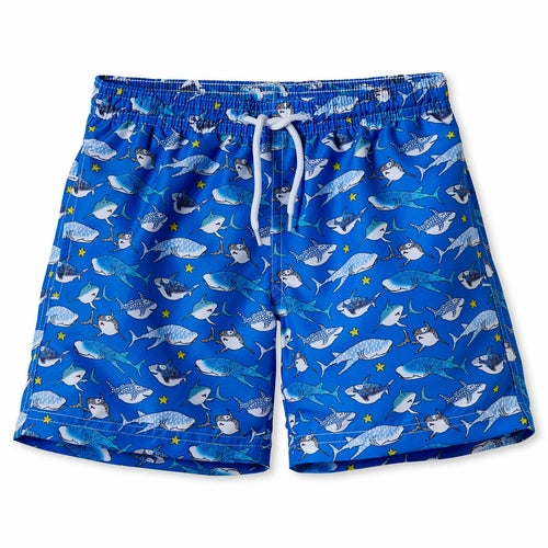 Boardshort met haaien koningsblauw
